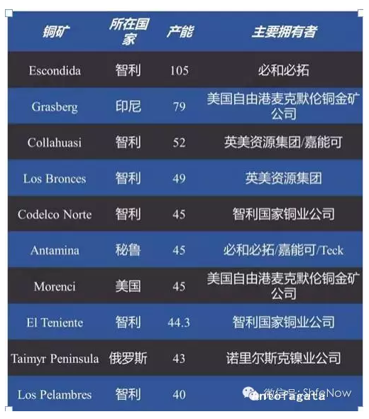2014年全球十大銅礦及其產(chǎn)量(萬噸)
