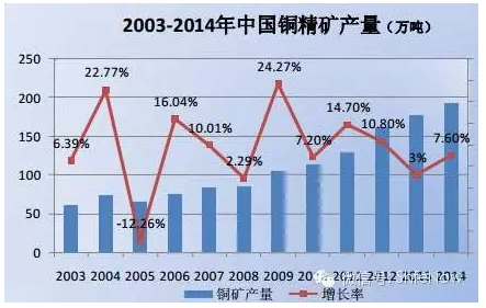 2014年中國銅精礦產(chǎn)量同比增長 7.6%