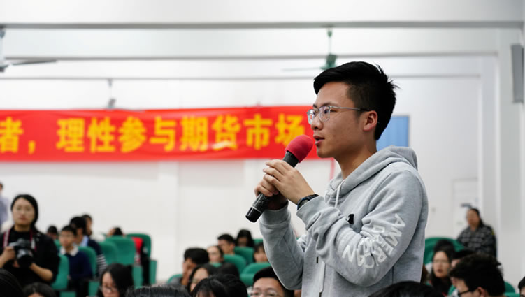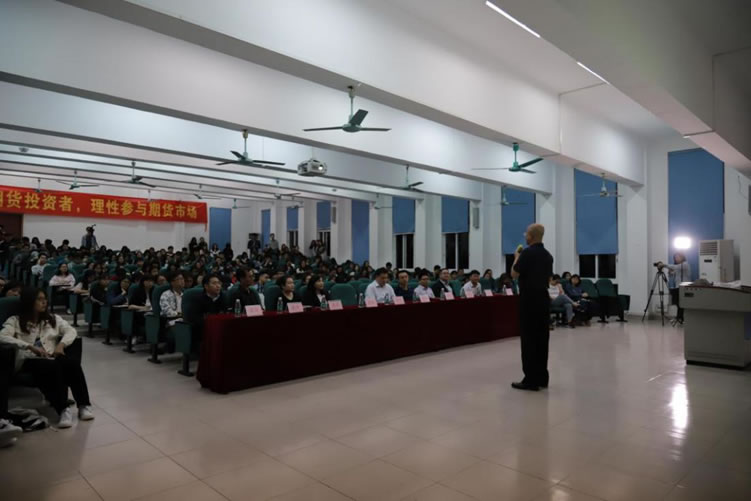 瑞龍期貨劉錦觀經理、韓永強經理就基礎知識、期貨術語、交易方法、風險防范、提高自我保護等內容做了主題演講,提醒同學們“理性投資,從我做起”,并回答了學生的提問。