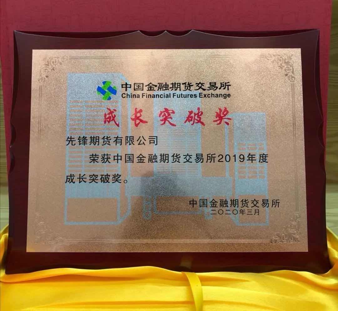 - 先鋒期貨榮獲中國金融期貨交易所2019年度“成長突破獎
