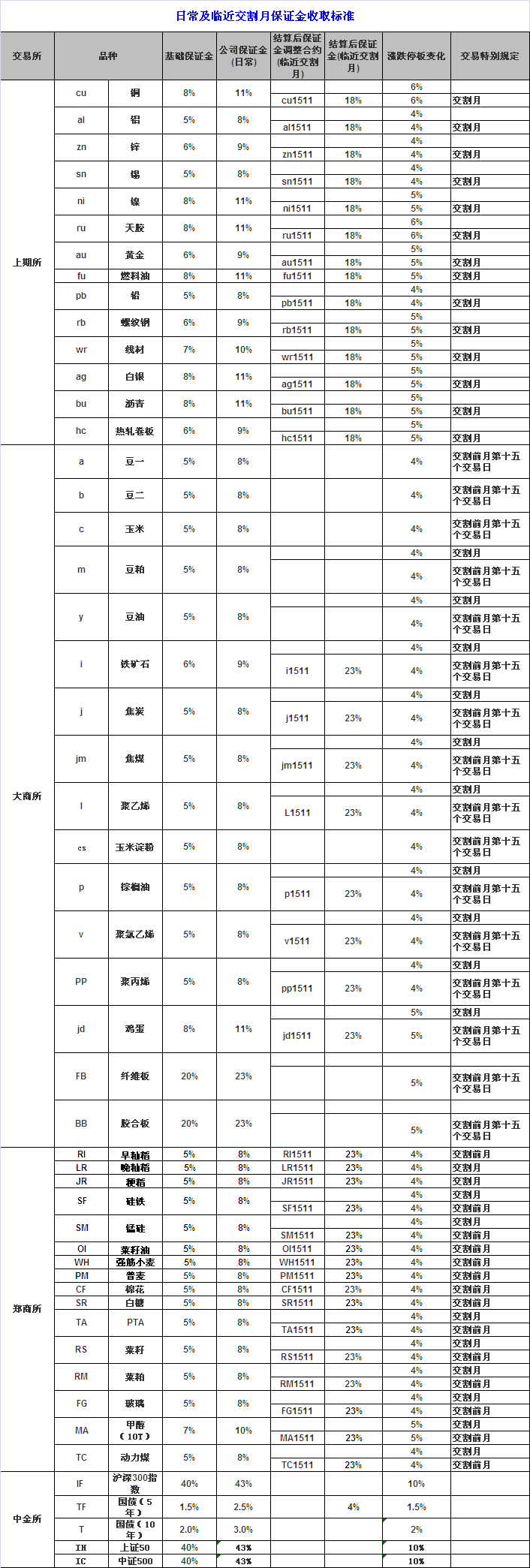 4、SM601、SM603、SM605合約停板,交易所保證金比例調(diào)整為9%。