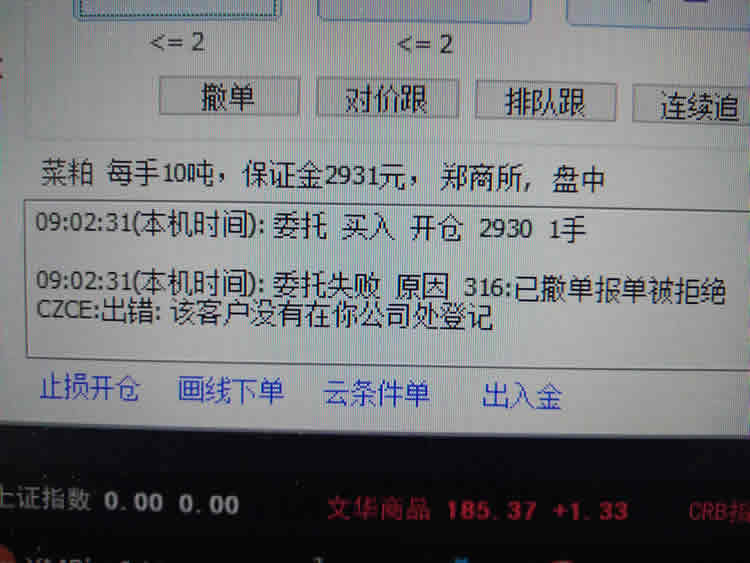 “已撤單,報單被拒絕CZCE:出錯:該客戶沒有在你公司登記”