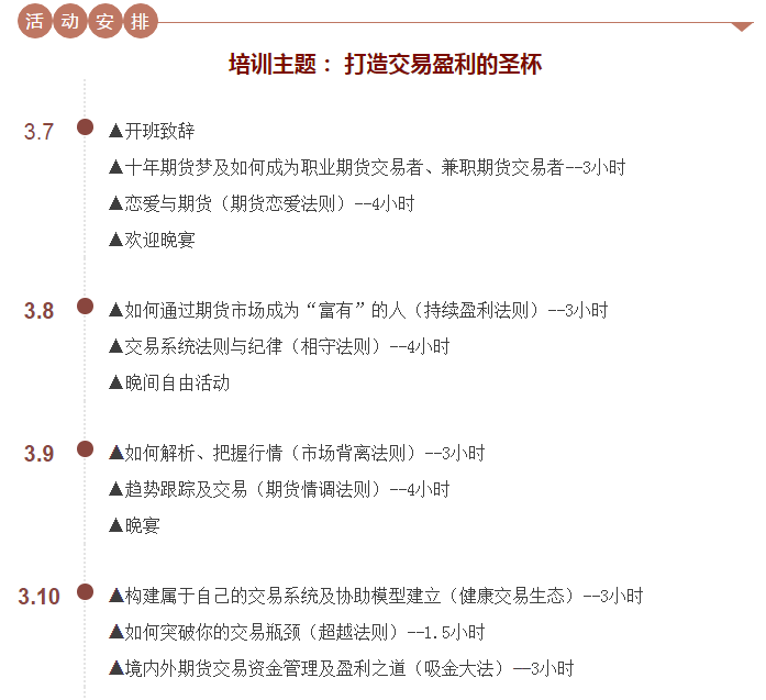 期投圈導(dǎo)師:雷紅軍,將結(jié)合其二十多年豐富的期貨交易經(jīng)驗(yàn),與您相約深圳,6天時(shí)間與您真正的面對(duì)面交流、一對(duì)一分享,助你找到做期貨交易的正確途徑,專屬打造你的盈利之路!