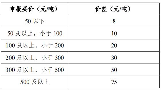 期權(quán)合約最優(yōu)買賣報價差小于等于下表價差時,不得詢價。