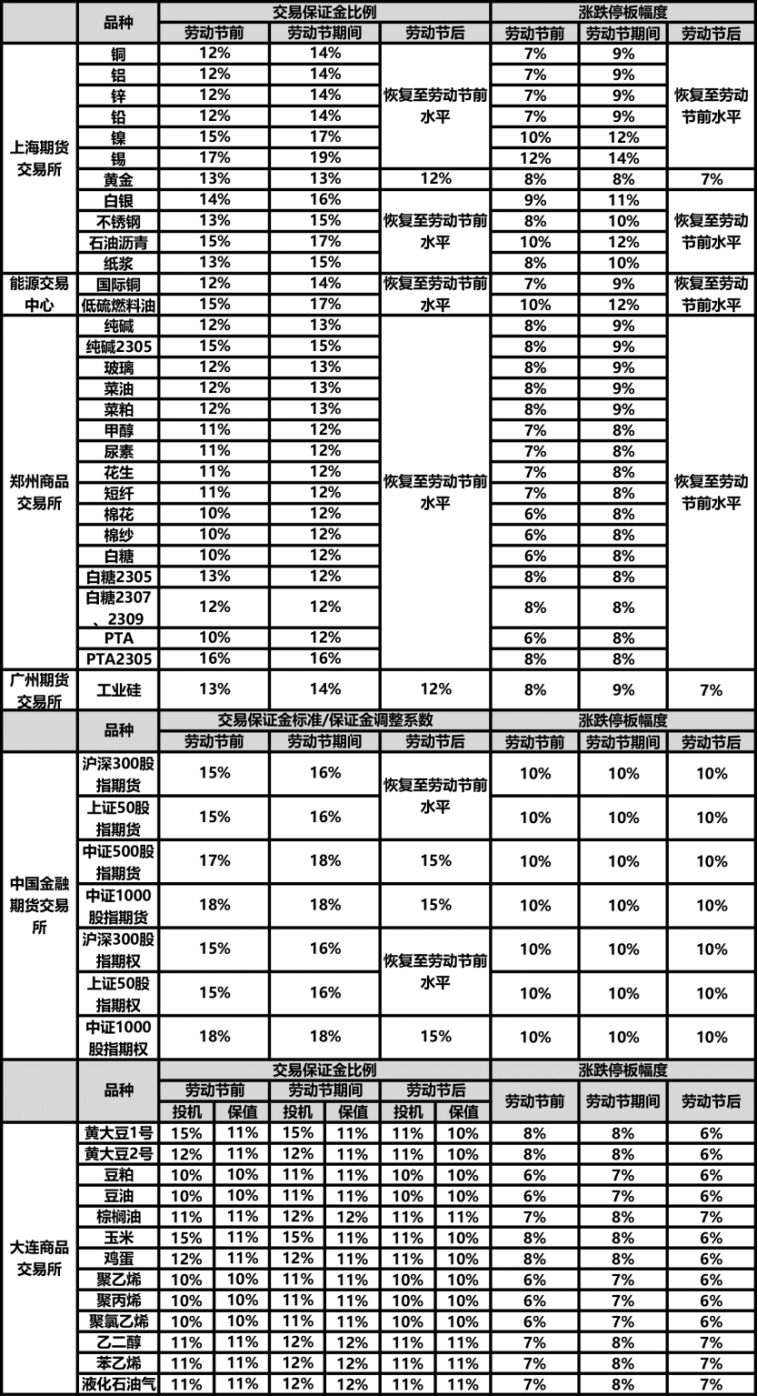 根據(jù)各交易所放假期間保證金調(diào)整通知,經(jīng)研究決定,公司從4月27日(星期四)結(jié)算時(shí)起調(diào)整如下表: