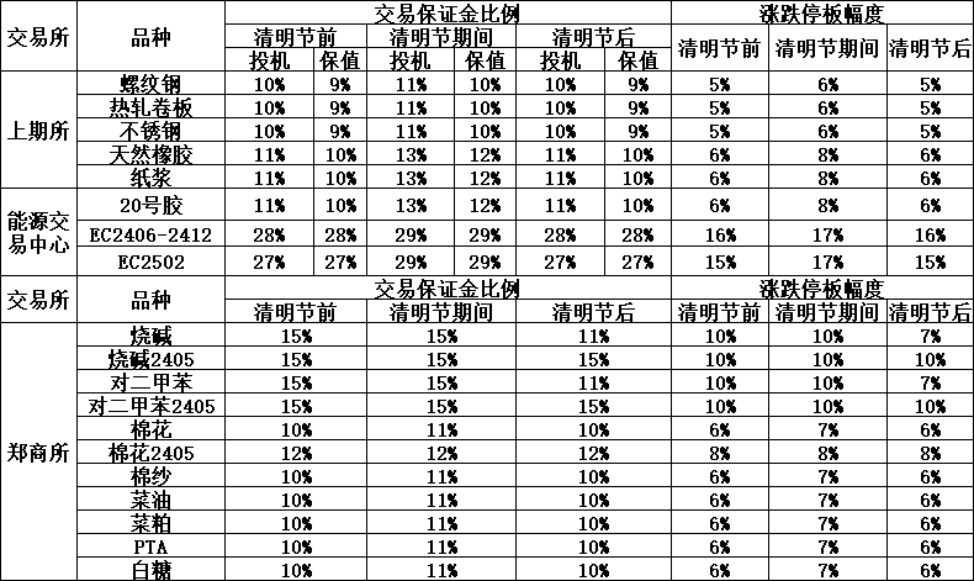 根據(jù)各交易所放假期間保證金調整通知,經(jīng)研究決定,公司從4月2日(星期二)結算時起調整見附表。