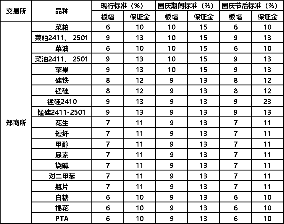 根據(jù)各交易所放假期間保證金調(diào)整通知,經(jīng)研究決定,公司從9月27日(星期五)結(jié)算時(shí)起調(diào)整見附表。