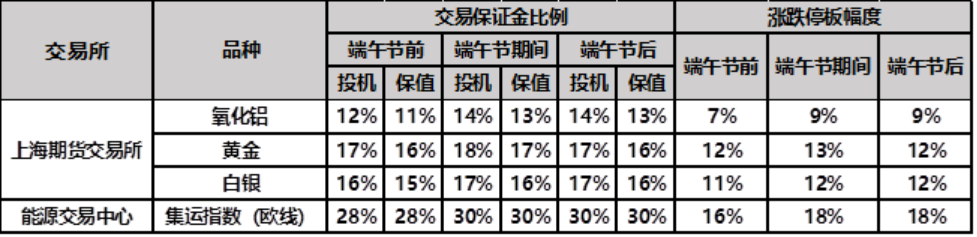 根據(jù)各交易所放假期間保證金調(diào)整通知,經(jīng)研究決定,公司從5月29日(星期四)結(jié)算時(shí)起調(diào)整如下: