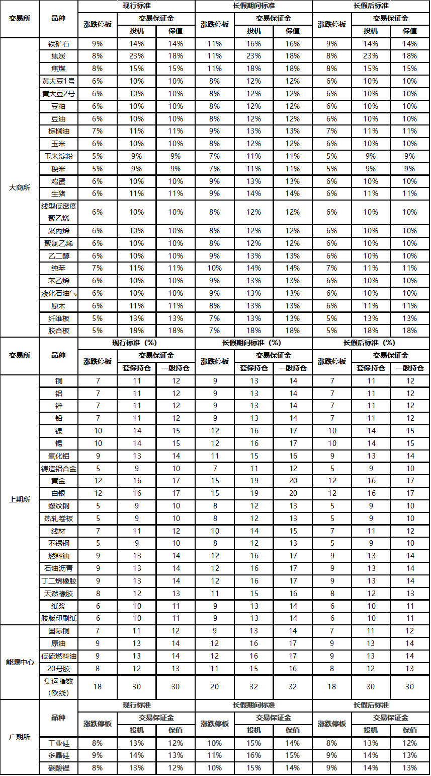 根據(jù)各交易所放假期間保證金調(diào)整通知,經(jīng)研究決定,公司從9月29日(星期一)結(jié)算時(shí)起調(diào)整見附表。
