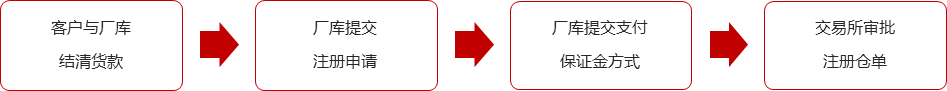客戶與廠庫結(jié)清貨款等費(fèi)用后,廠庫通過交易所倉單系統(tǒng)提交倉單注冊申請。