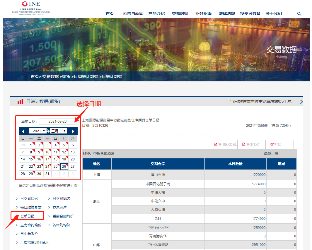 - 上海國(guó)際能源交易中心指定交割倉(cāng)庫(kù)期貨倉(cāng)單日?qǐng)?bào)