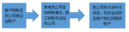二、銀行柜臺(tái)銀期轉(zhuǎn)賬辦理流程 個(gè)人投資者攜帶: 1、與本公司簽署的《先鋒期貨有限公司銀期轉(zhuǎn)賬協(xié)議書(shū)》; 2、本人身份證及銀行卡; 3、期貨資金賬號(hào)及 資金密碼,到任意銀行營(yíng)業(yè)網(wǎng)點(diǎn)柜臺(tái)簽約辦理開(kāi)通手續(xù)。 機(jī)構(gòu)投資者攜帶: 1、全套銀行開(kāi)戶(hù)資料; 2、與我公司簽署的《銀期直通車(chē)業(yè)務(wù)協(xié)議書(shū)》; 3、期貨資金賬號(hào)及資金密碼, 到客戶(hù)的指定期貨結(jié)算賬戶(hù)開(kāi)戶(hù)銀行網(wǎng)點(diǎn)柜臺(tái)辦理開(kāi)通。 三、轉(zhuǎn)賬操作途徑:通過(guò)網(wǎng)上銀行或公司交易系統(tǒng)進(jìn)行資金劃轉(zhuǎn)。 注:公司轉(zhuǎn)賬限制規(guī)定: 1. 入金,周一至周五8:30—15:30,21:00-2:00(法定節(jié)假日除外); 出金,周一至周五9:15—15:30(法定節(jié)假日除外); 2. 每日累計(jì)最大出金次數(shù)為6次,取款比例為可用資金的99%,當(dāng)日平倉(cāng)盈利不可出金; 3. 單筆最大出金限額為100萬(wàn),每日累計(jì)出金限額為500萬(wàn)元; 4. 當(dāng)日累計(jì)出金超過(guò)500萬(wàn)元或有其他特殊要求需提前致電公司客服熱線4008824188。 銀行收費(fèi): 所有銀行暫不收取投資者銀期轉(zhuǎn)賬服務(wù)費(fèi),未來(lái)收費(fèi)金額與方式以各銀行公告為準(zhǔn)。 銷(xiāo)戶(hù)提示: 客戶(hù)在撤銷(xiāo)期貨賬戶(hù)前,務(wù)必確保期貨賬戶(hù)權(quán)益為0;再通過(guò)網(wǎng)銀或者銀行柜臺(tái)辦理銀期轉(zhuǎn)賬撤銷(xiāo)手續(xù),以免造成期貨賬戶(hù)銷(xiāo)戶(hù)不成功、無(wú)法開(kāi)通新的銀期轉(zhuǎn)賬賬戶(hù)或由于銀行開(kāi)始自動(dòng)收取服務(wù)年費(fèi)等損失。 四、非銀期轉(zhuǎn)賬出入金 入金流程: 1、客戶(hù)可通過(guò)銀行柜臺(tái)、網(wǎng)銀、自助柜員機(jī)等方式將資金轉(zhuǎn)賬至我公司的保證金賬戶(hù); 2、致電我公司告知轉(zhuǎn)賬情況,并將轉(zhuǎn)賬記錄通過(guò)傳真,電子郵件等發(fā)送給我公司。