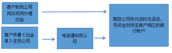 3、公司交易服務(wù)、結(jié)算、財(cái)務(wù)部門(mén)核對(duì)信息無(wú)誤后將資金劃轉(zhuǎn)至客戶(hù)的期貨賬戶(hù)。 出金流程: 1、 客戶(hù)可在交易時(shí)間到公司營(yíng)業(yè)網(wǎng)點(diǎn)現(xiàn)場(chǎng)辦理出金手續(xù); 2、 如無(wú)法到營(yíng)業(yè)網(wǎng)點(diǎn)現(xiàn)場(chǎng)辦理,可下載《出金單》填寫(xiě)賬號(hào)金額等信息并簽字后傳真至我公司營(yíng)業(yè)網(wǎng)點(diǎn),并電話通知我公司營(yíng)業(yè)網(wǎng)點(diǎn)辦理出金手續(xù); 3、 公司結(jié)算、財(cái)務(wù)部門(mén)核對(duì)信息無(wú)誤后將資金劃至客戶(hù)的銀行結(jié)算賬戶(hù)。