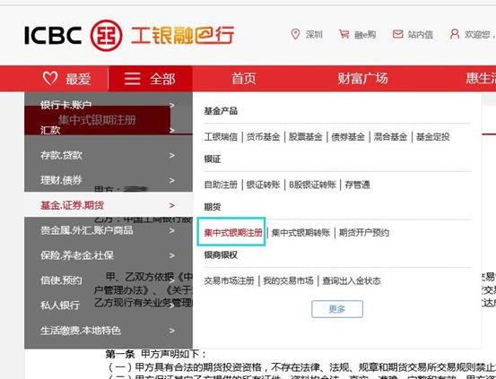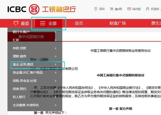二、選擇“全部”—“基金,證券,期貨”—“集中式銀期注冊”—點(diǎn)擊“接受協(xié)議”