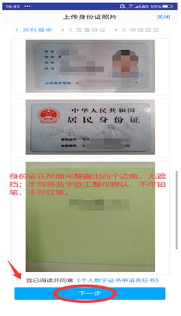 (2)上傳身份證正面、反面和簽名照等圖片,上傳的照片必須是近距離拍攝、畫面清楚的,否則會(huì)影響到后面獲取客戶資料的流程。