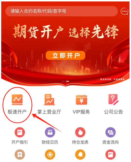 點(diǎn)擊“極速開戶”進(jìn)入業(yè)務(wù)選擇界面: