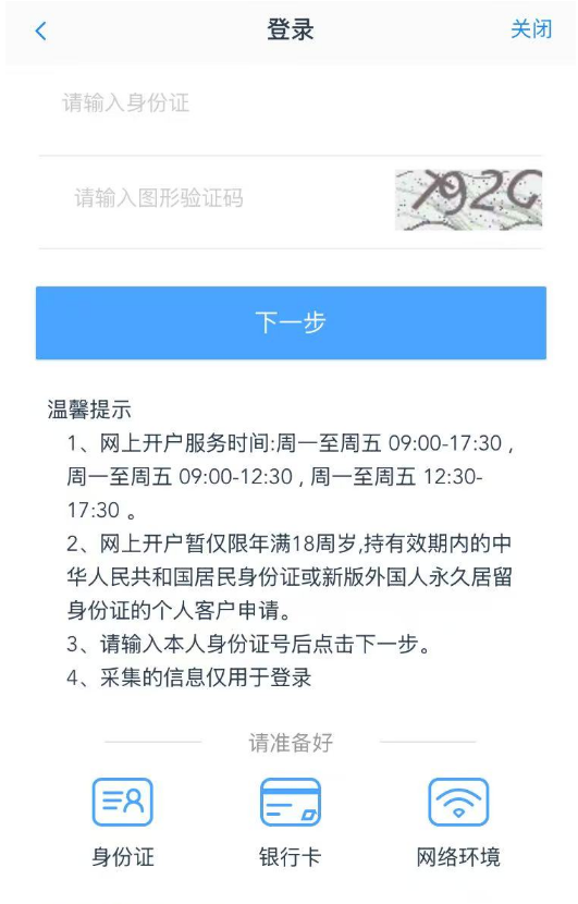 (1)選擇“開立期貨賬戶”,進(jìn)入登錄界面,輸入身份證號(hào)及圖形驗(yàn)證碼,點(diǎn)擊下一步; 進(jìn)入開立期貨賬戶頁面,輸入圖形驗(yàn)證碼,再輸入短信驗(yàn)證碼,點(diǎn)擊馬上開戶。