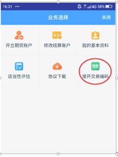 ★溫馨提示:網(wǎng)上開戶服務時間:周一至周五上午 09:00-11:30 , 下午 13:00-17:00。 增開交易編碼:對于存量客戶,選擇此項可申請其他未開通的交易所編碼。 增開交易編碼流程圖