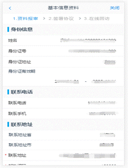 (3)進入基本信息資料頁面,會看到所有信息是已經(jīng)默認填寫的,這些都是客戶在開戶云系統(tǒng)預留的基本信息,客戶僅可以修改其他信息資料(不能修改身份信息),可以點擊“返回上一步”重新上傳照片信息。若此必填信息為空,則需要投資者先完成適當性評估后再進行增開交易編碼業(yè)務。