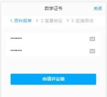 (8)視頻完成后,進入安裝數(shù)字證書界面,此處設置的密碼一定要記住,在之后的流程中會用到驗證證書的密碼。否則,只能刪除本地證書文件,重新視頻驗證、安裝證書才可通過。