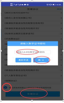 (9)進入簽署協(xié)議界面,點擊簽署協(xié)議,輸入數(shù)字證書,確認。