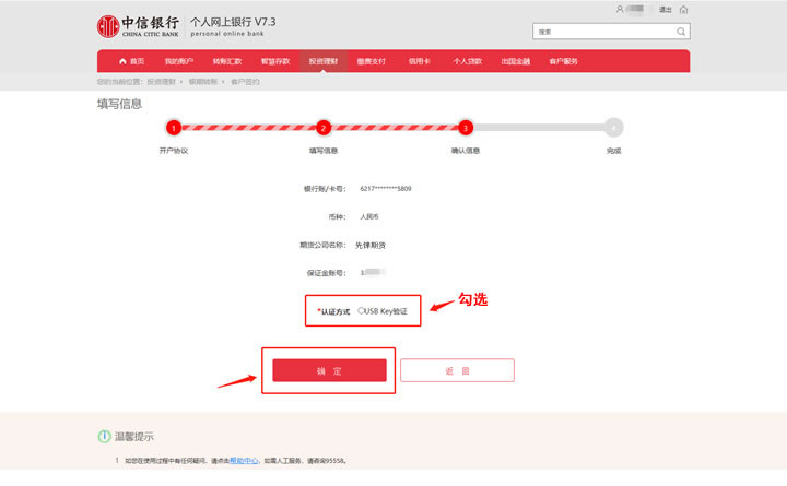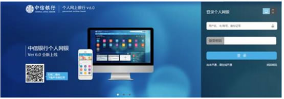 第一步:登陸中信銀行首頁,選擇”個人網上銀行登錄”出現登錄界面,如圖: