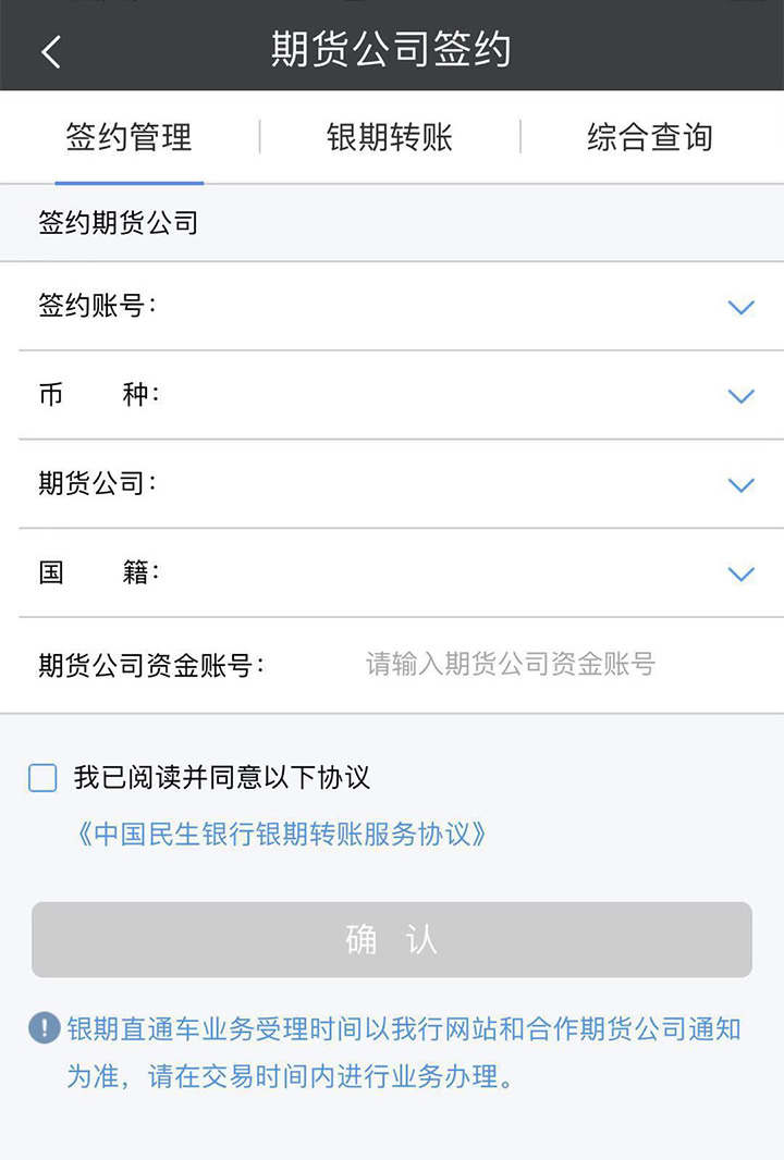 選擇“簽約管理”菜單,點擊“+簽約期貨公司”
