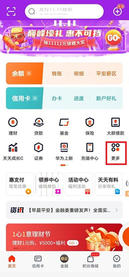 打開手機網銀,點擊“更多”,進入詳細菜單頁面
