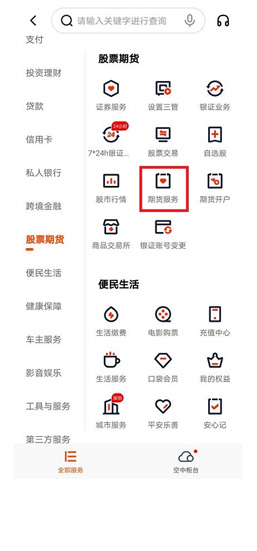 選擇左邊“股票期貨”,勾選下設子菜單“期貨服務”,進入期貨業(yè)務辦理界面